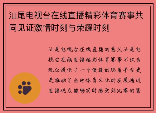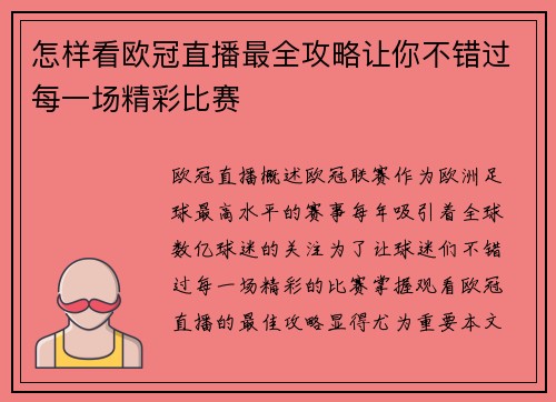在现代社会,体育赛事不仅是竞技的舞台,更是人们情感的寄托。教育频道通过在线直播精彩体育赛事,让观众在家中也能感受到运动的魅力与激情。本文将从四个方面详细探讨这一现象:首先,在线直播如何打破时间和空间的限制;其次,教育频道如何通过专业解说提升观众的观看体验;第三,在线直播对青少年体育教育的积极影响;最后,如何通过互动增强观众的参与感。通过这些方面的分析,我们将更深入地理解在线直播体育赛事的价值。 ...