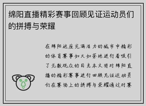 赛事回顾概述 皱市明直播精彩赛事回顾,展现了运动员们在赛场上拼搏与荣耀的动人瞬间。通过对赛事的全方位回顾,我们不仅能够感受到运动员们的努力与坚持,还能领略到体育精神的真谛。本文将从赛事的精彩瞬间、运动员的拼搏精神、观众的热情支持以及赛事的影响力四个方面进行详细阐述,力求全面展现皱市明直播所带来的震撼体验。每一个环节都充满了激情与感动,运动员们在赛场上挥洒汗水,观众们在看台上呐喊助威,共同谱写了一曲...
